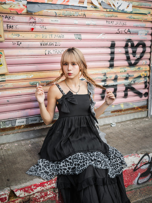 • 吊帶豹紋荷葉裙擺連衣裙🍒