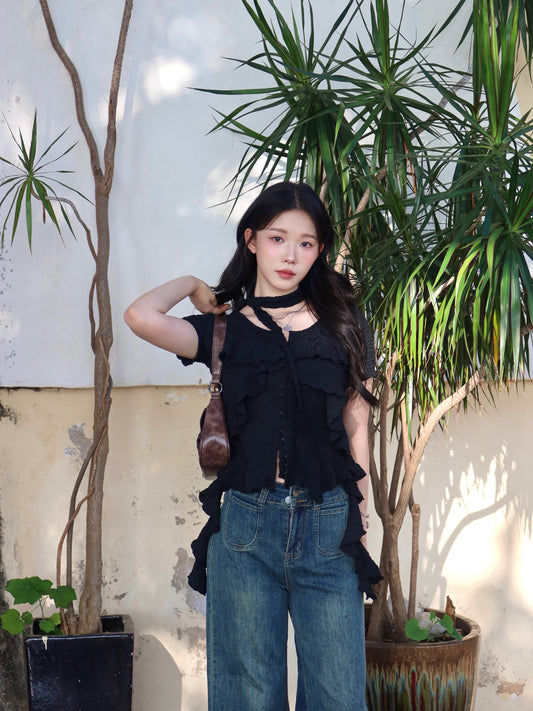 芭蕾風蝴蝶結蕾絲上衣🎀