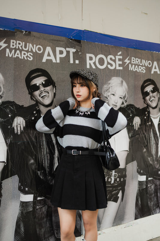 🇰🇷韓國小性感街頭風- 間條露膊針織上衣✨