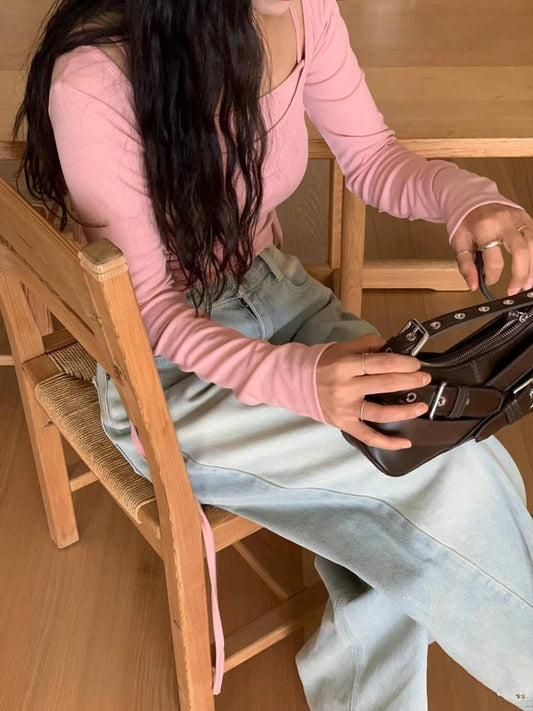 ˶顯瘦百搭˶假兩件抽繩上衣ᵎᵎ