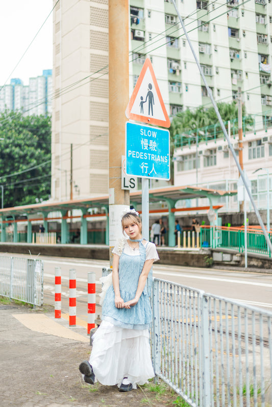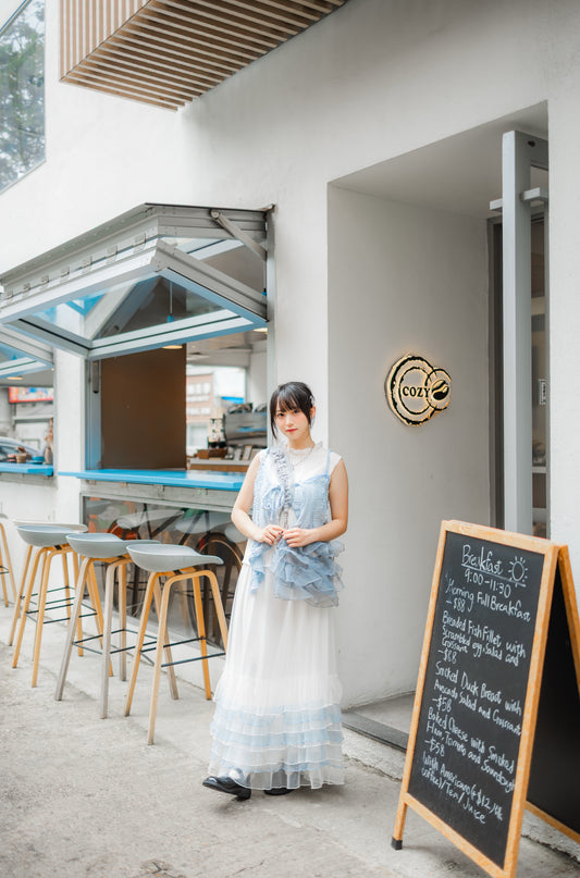 高質款💙✨雪紡蕾絲掛頸OPS -藍色