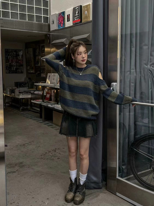 減齡露肩條紋針織衫🍒