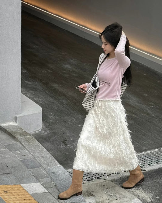 ✩ 羽毛流蘇.•♥鬆緊半身長裙🎀*·