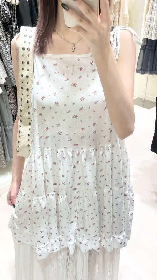 日系吊帶花花綁帶罩衫