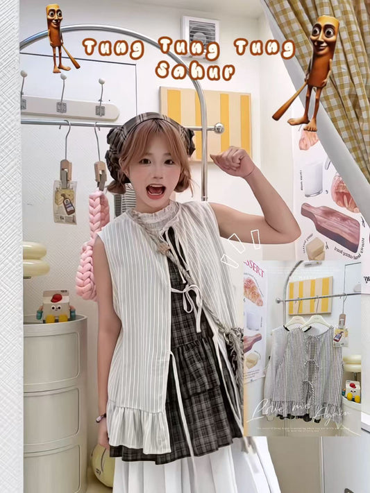 日係必愛🛒蝴蝶結格仔馬甲🫧