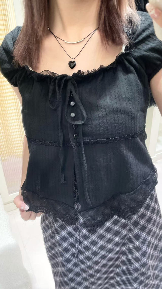 蕾絲蝴蝶結上衣+日系連身裙🖤