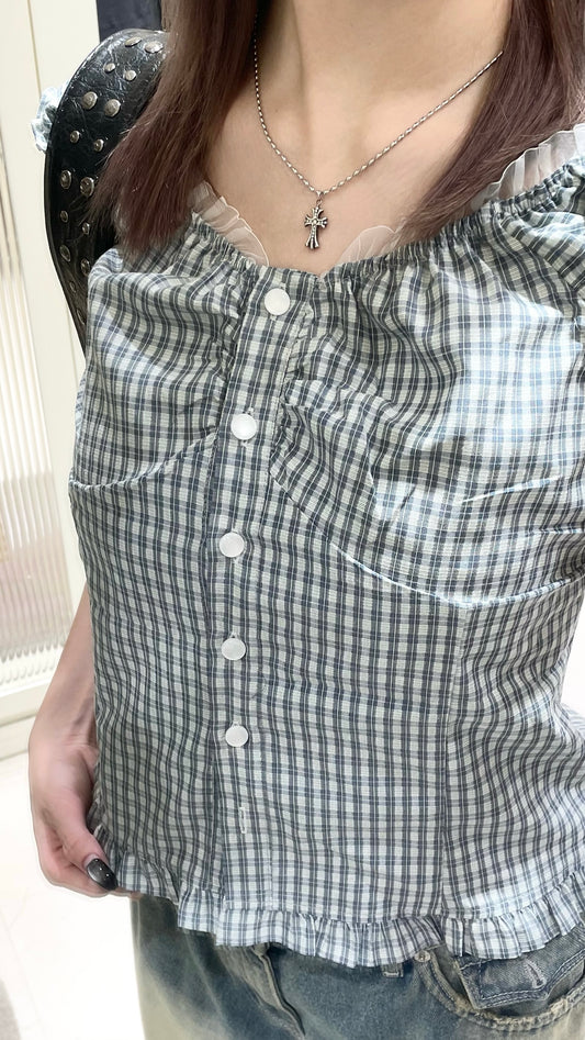花邊格仔背心搭牛仔褲🥯