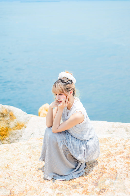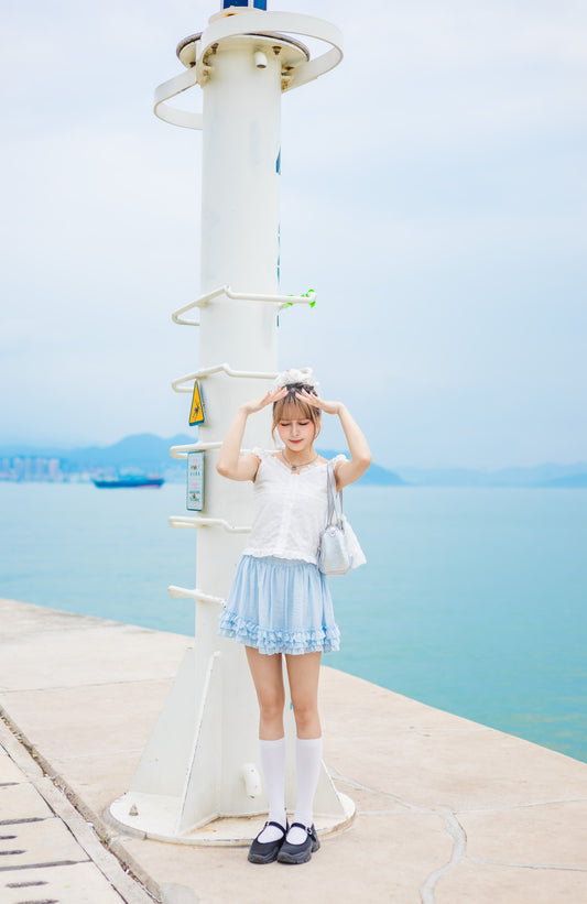 肩帶可調!💎✨藍色荷葉花邊OPS
