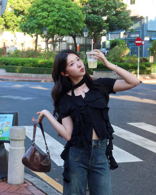 蕾絲蝴蝶上衣+銀色花花馬甲🎐