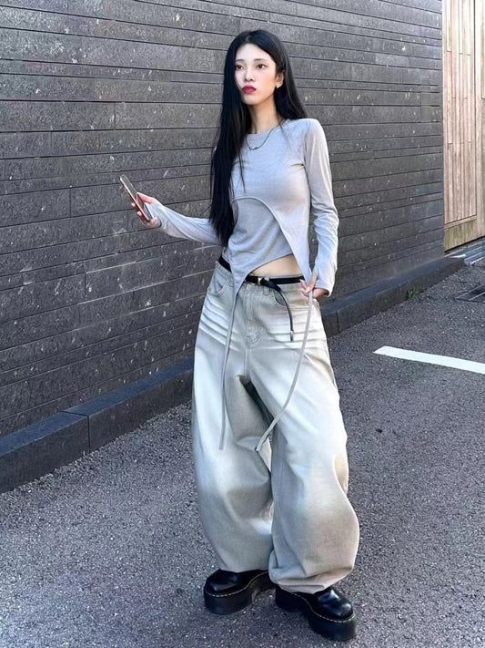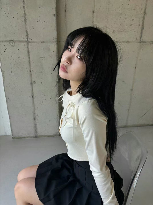 ⟡ 美式甜辣風🎀 ⟡圓領綁帶不規則上衣♡ ༘
