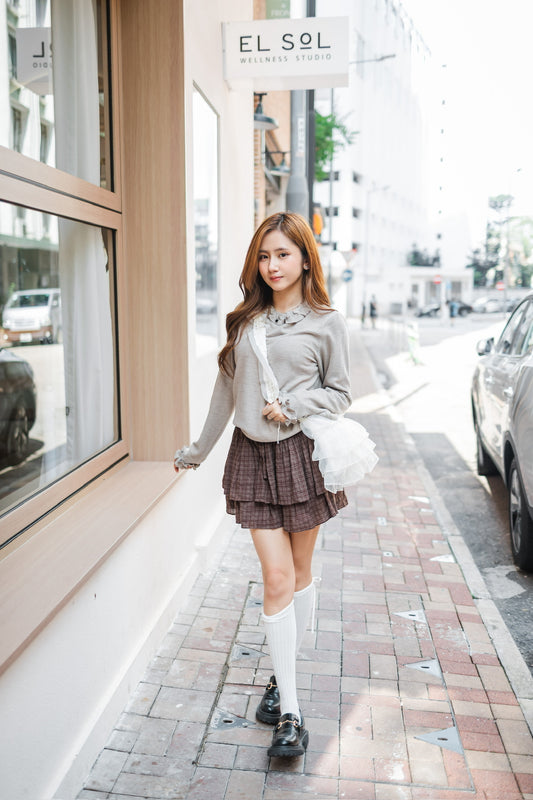 ✦韓系妹子必備✨蛋糕蕾絲短裙Beige