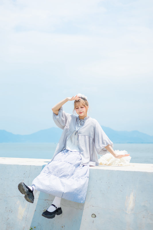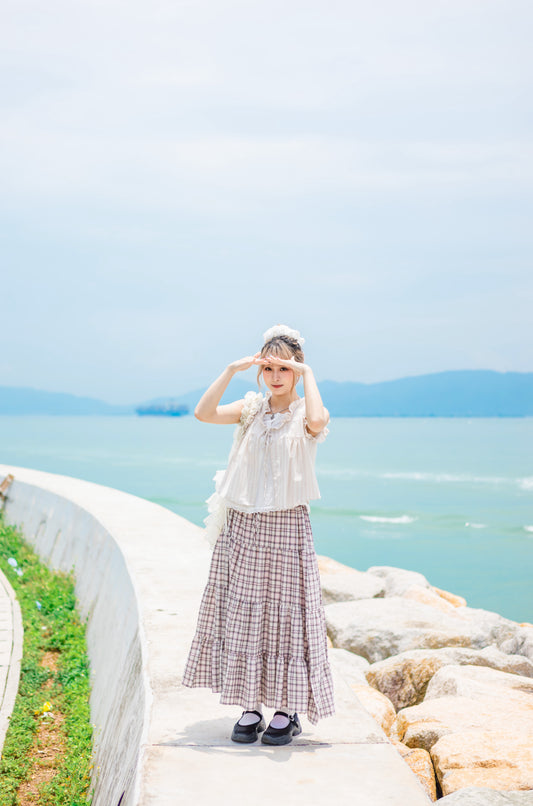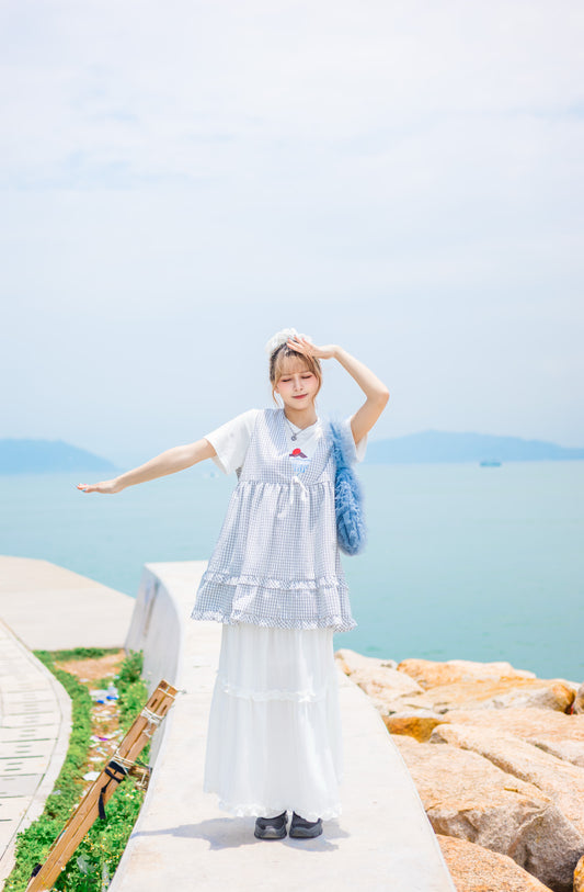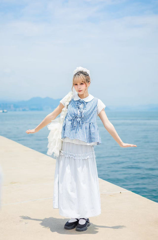 蕾絲蝴蝶上衣+長裙套裝🩵✨