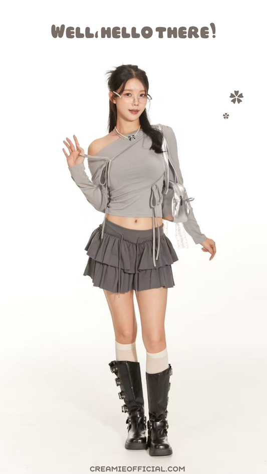 Snowy Marshmallow - Layers Mini skirt - 淺灰🖤