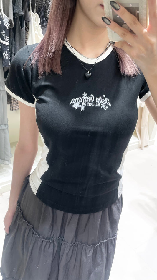拼色字母上衣+蛋糕短裙🍒