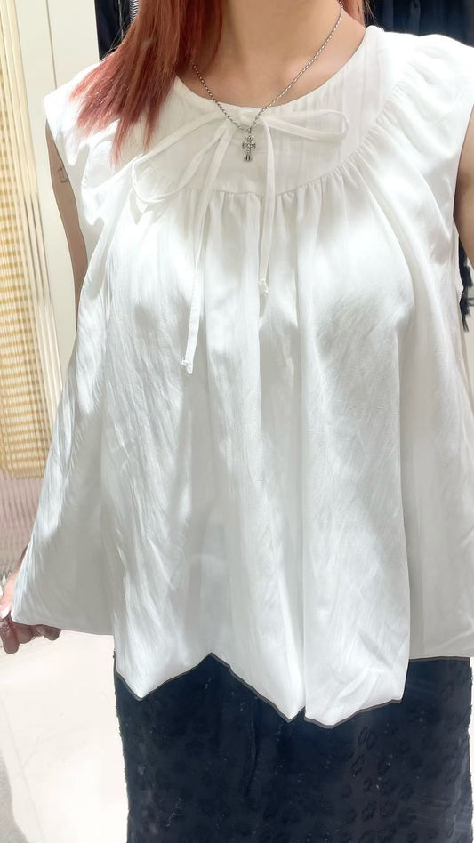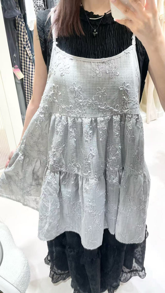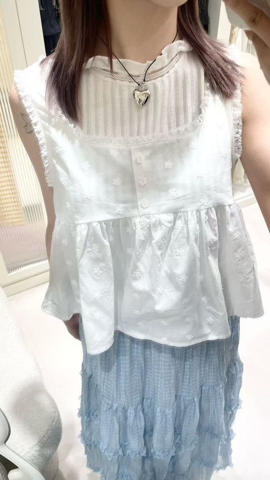 簡約泡泡背心搭花邊長裙🩵