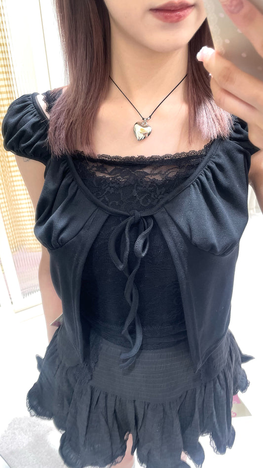 韓系復古拼接蕾絲短裙套裝✨