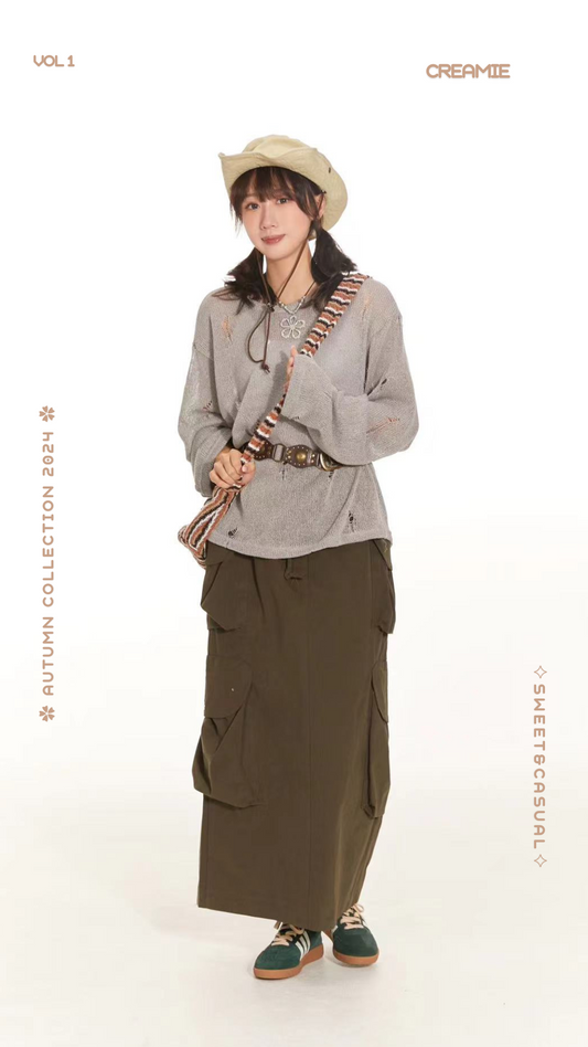 重工免燙工裝裙!綁帶側腰機能風長裙🍂