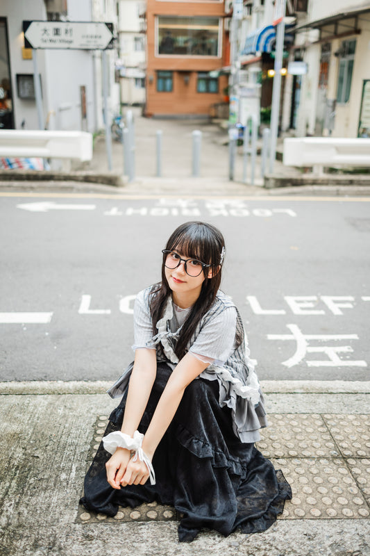 日系拼色蝴蝶結綁帶馬甲🤍