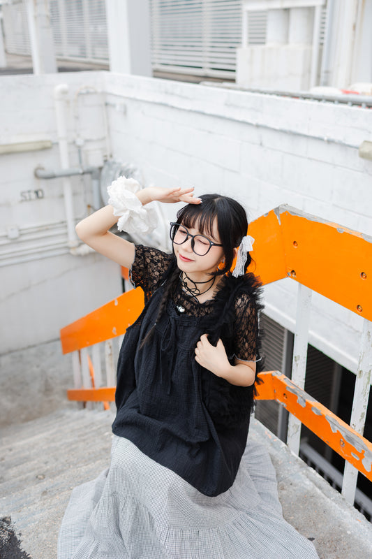 兩色入!蕾絲拼色打底上衣🖤🤍