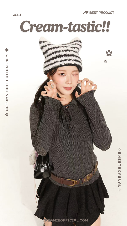 ‘Daily Needs🖤✨’ 綁帶混色立領上衣