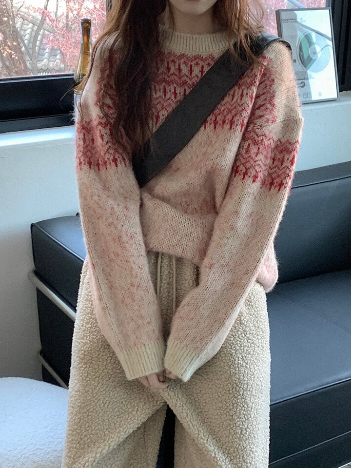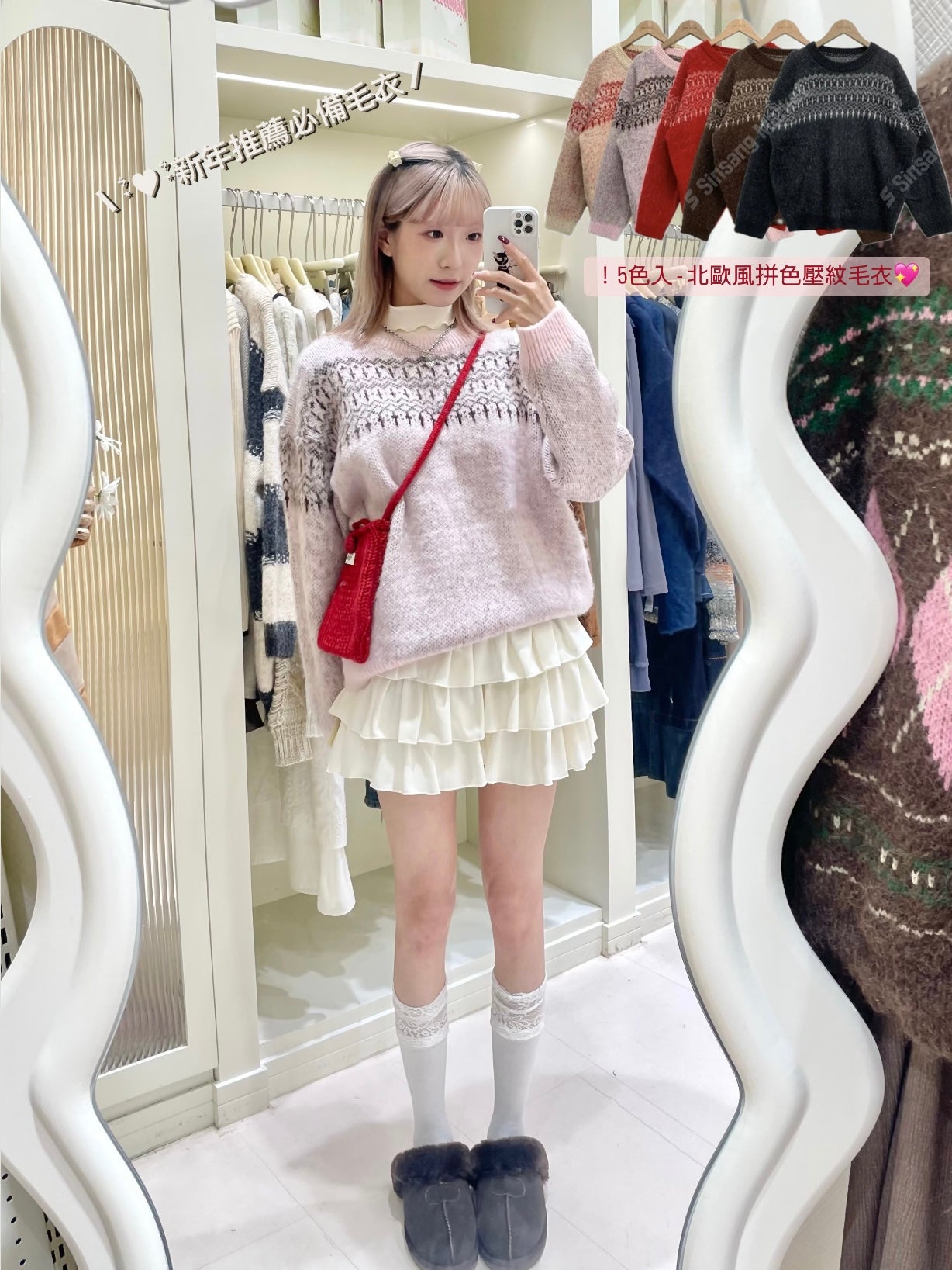 5色入 - 北歐風拼色壓紋毛衣🌸✨