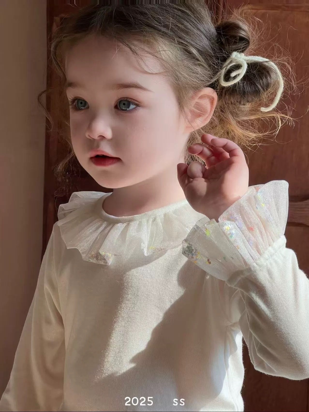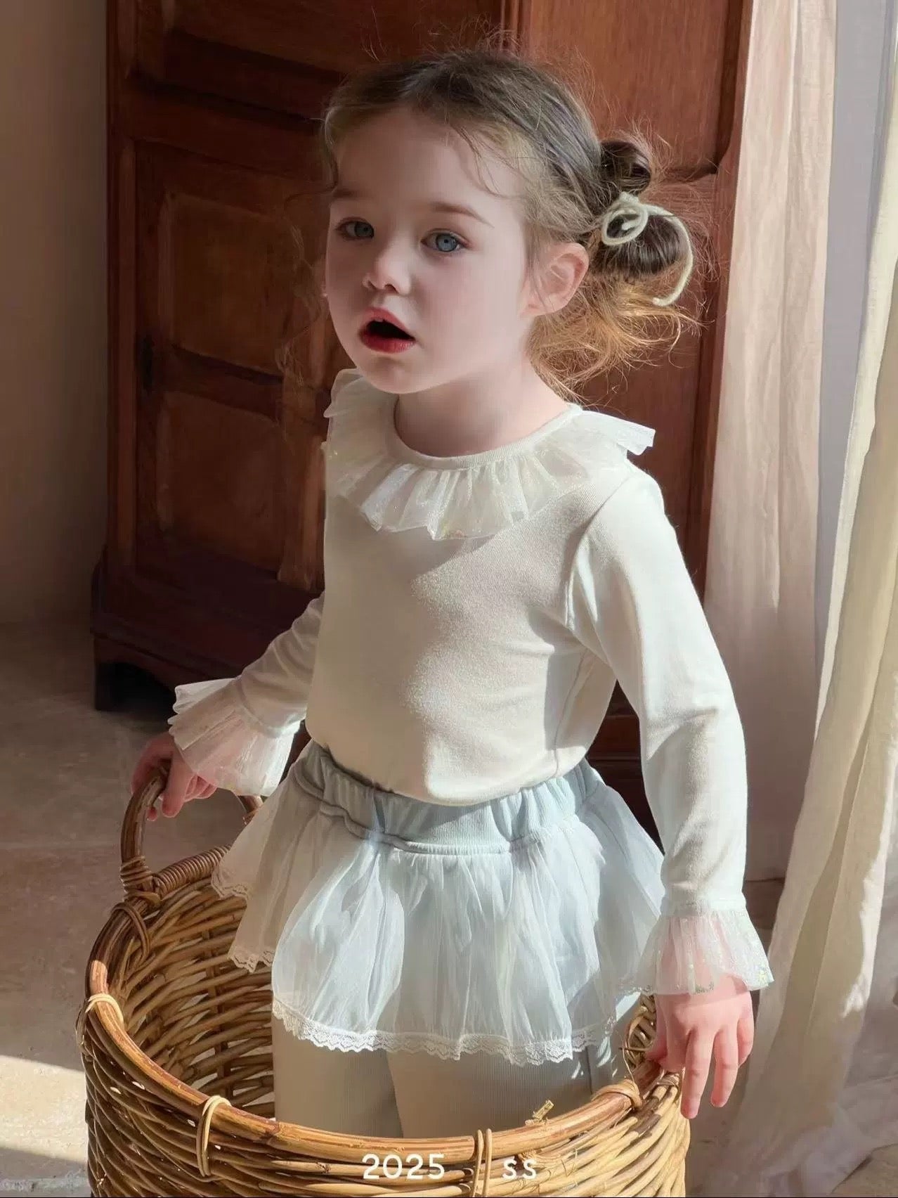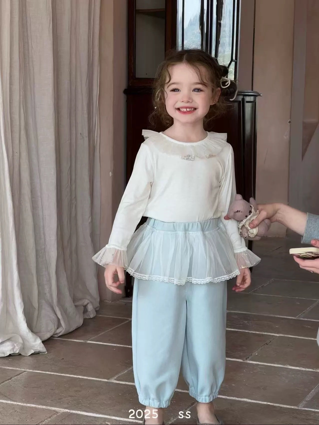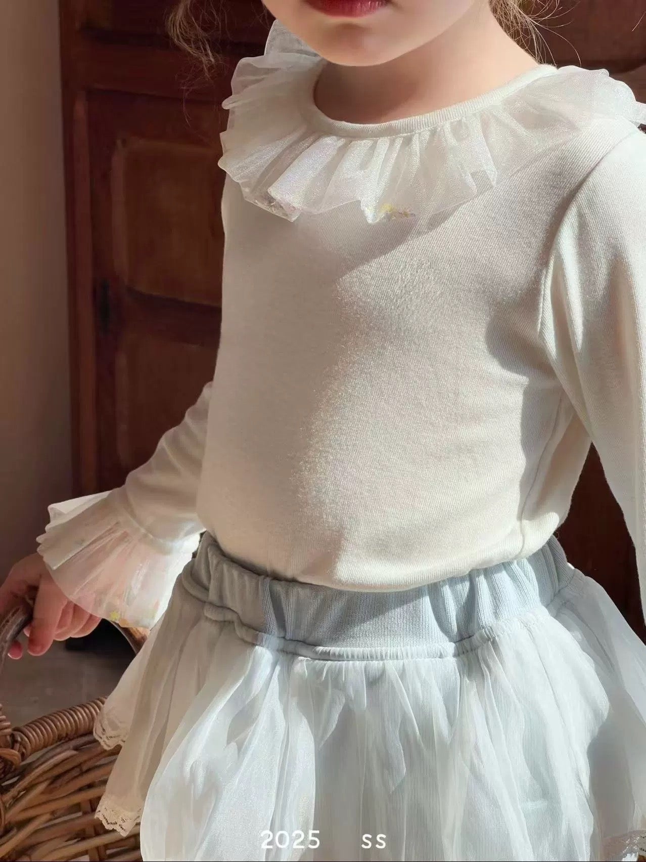 圓領網紗花邊長袖🐰
