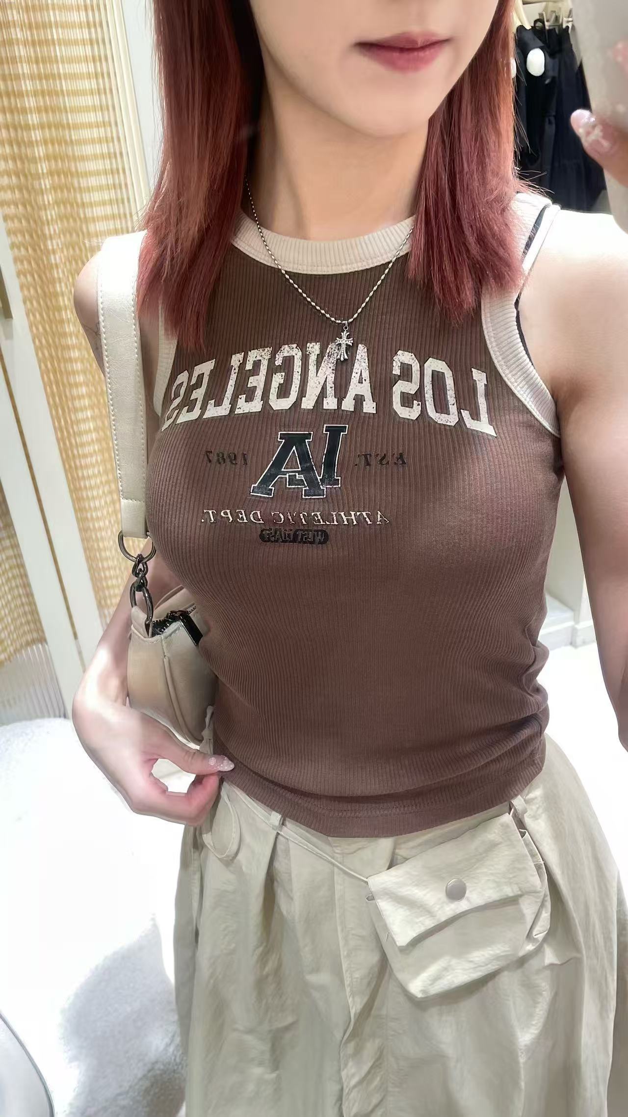 撞色拼接英文背心套裝🧀