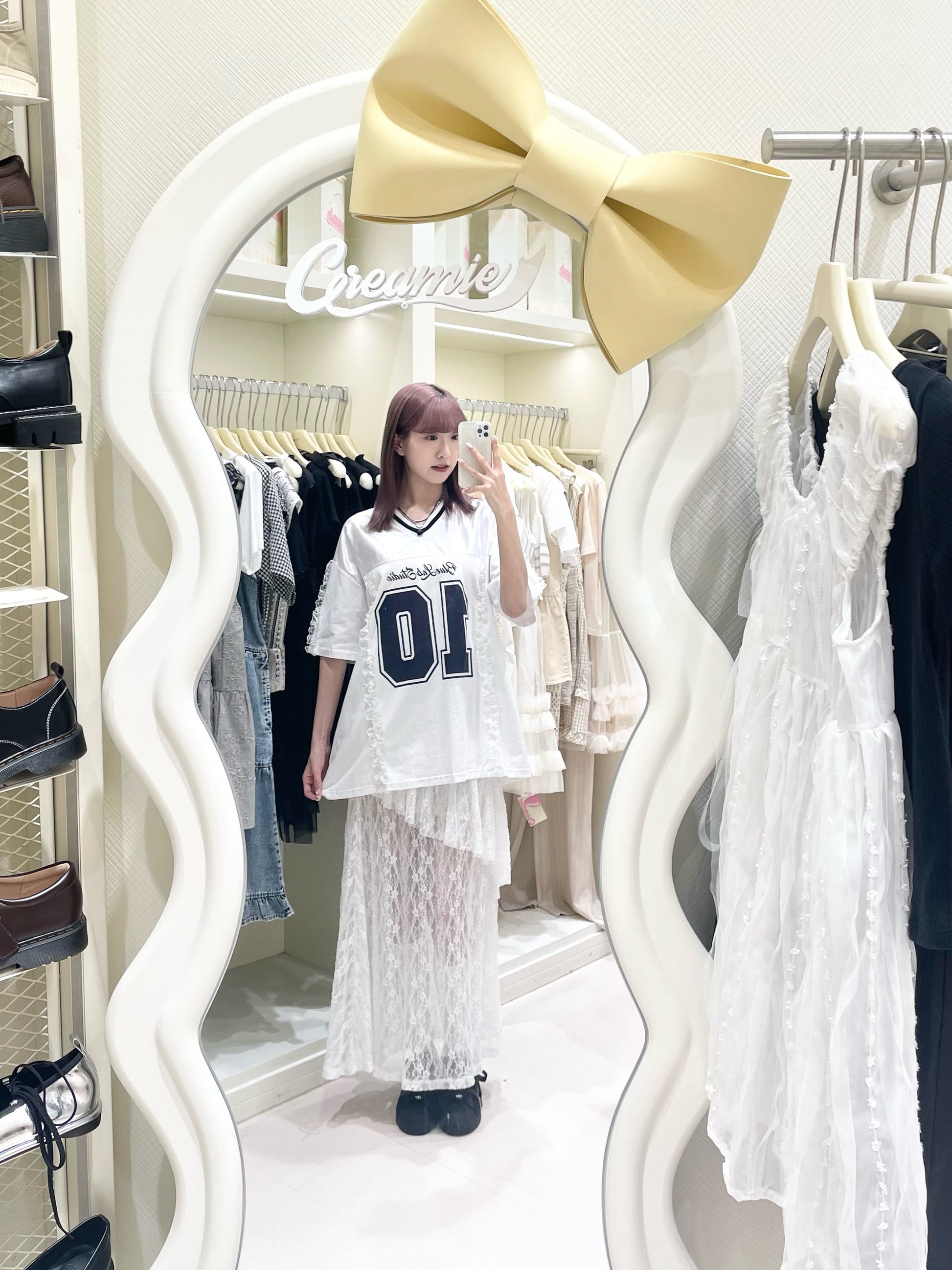 棒球風蕾絲上衣+長裙套裝💙🛒