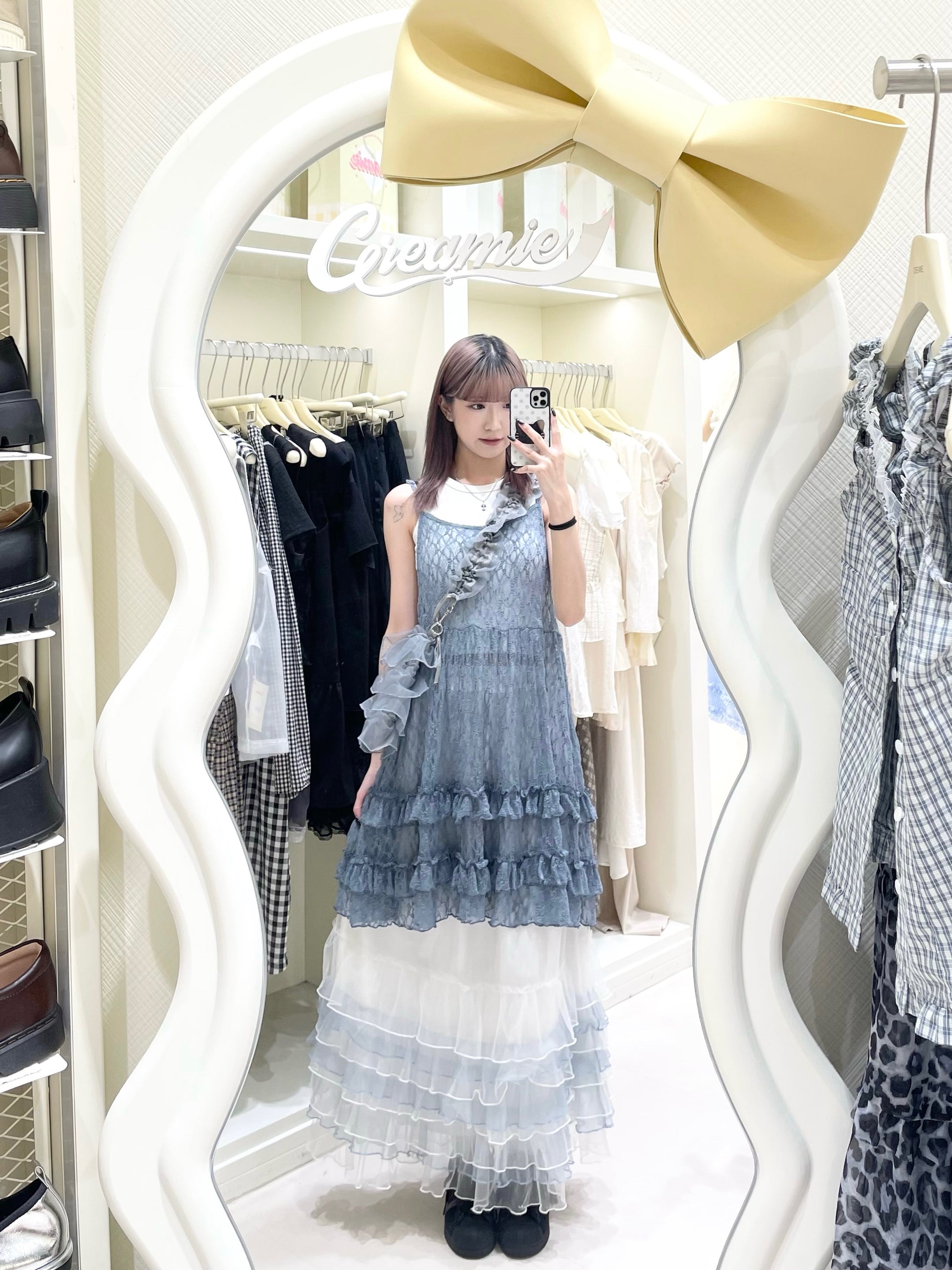 法式蕾絲疊穿套裝🩵