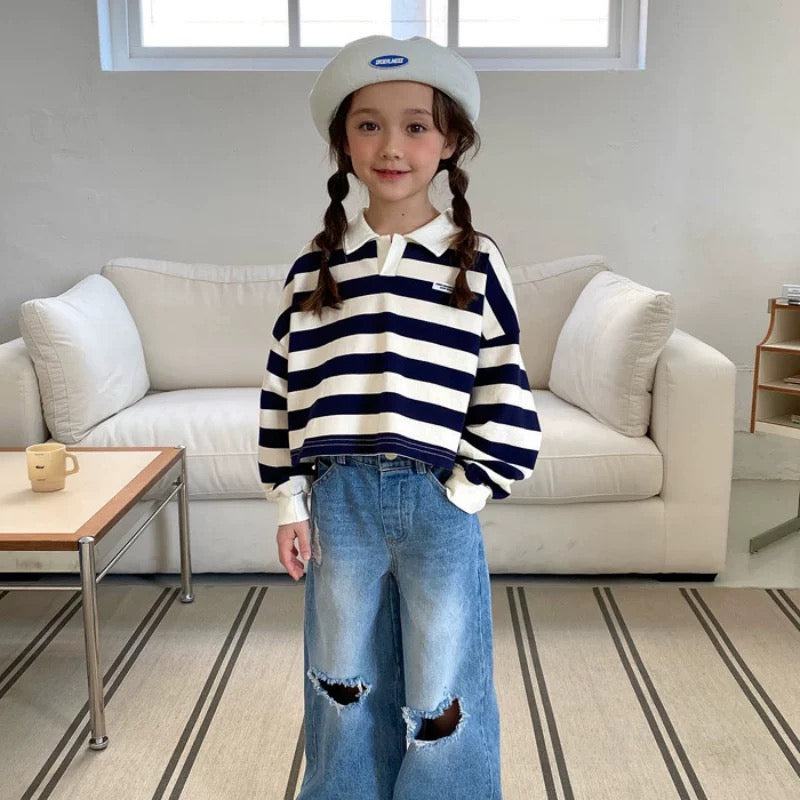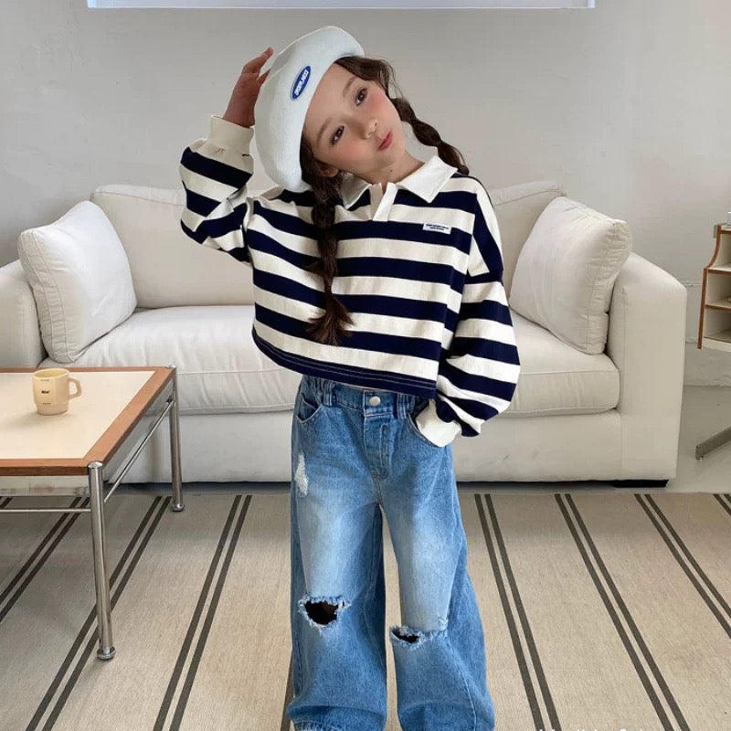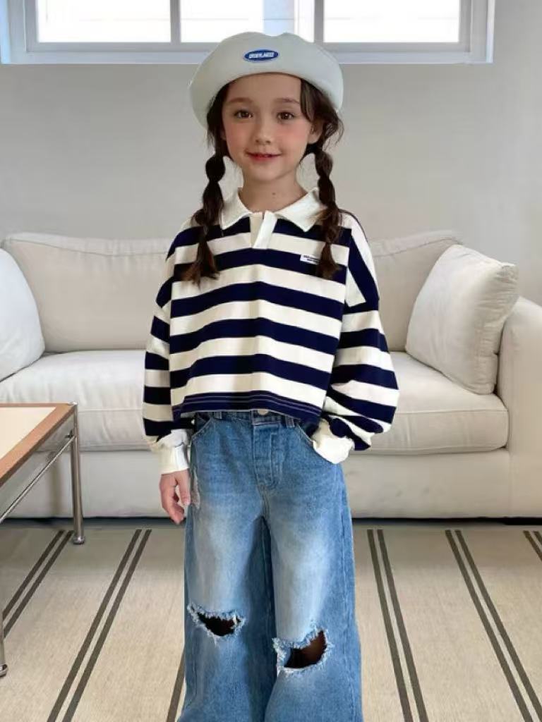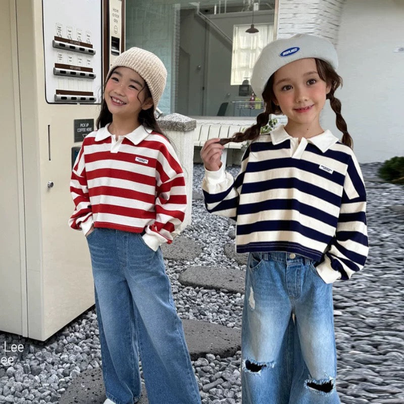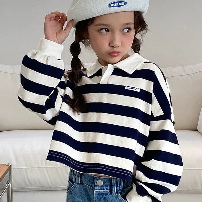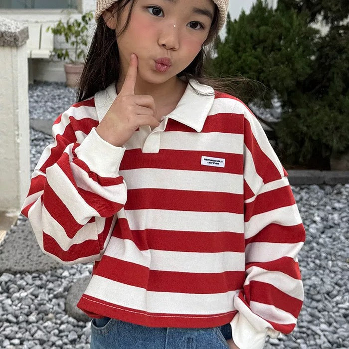 翻領扣鈕間條上衣🧸