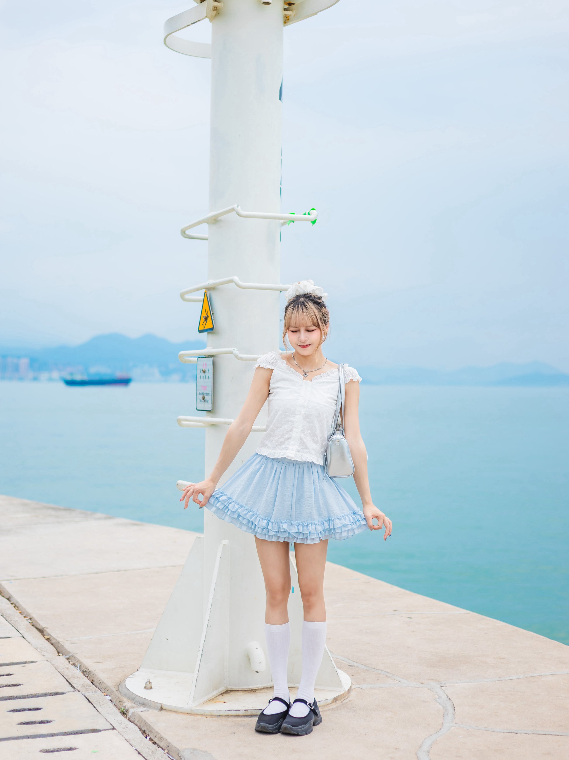 蕾絲小碎花韓系上衣: