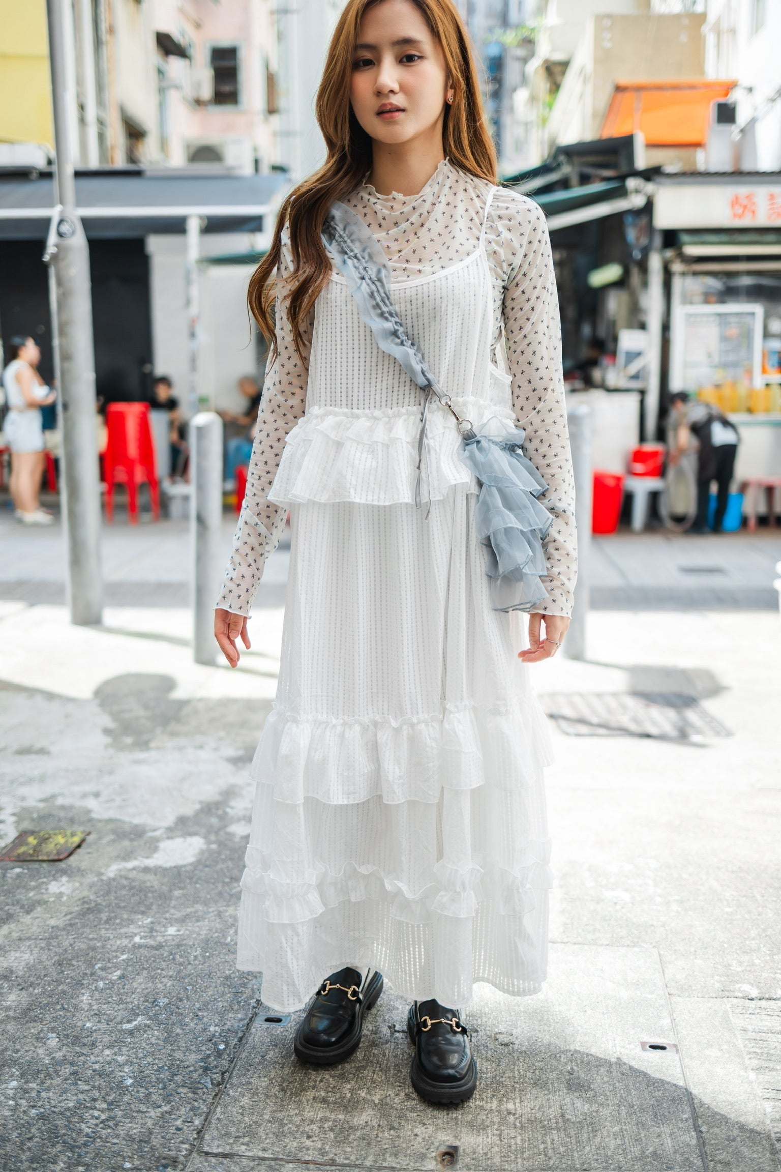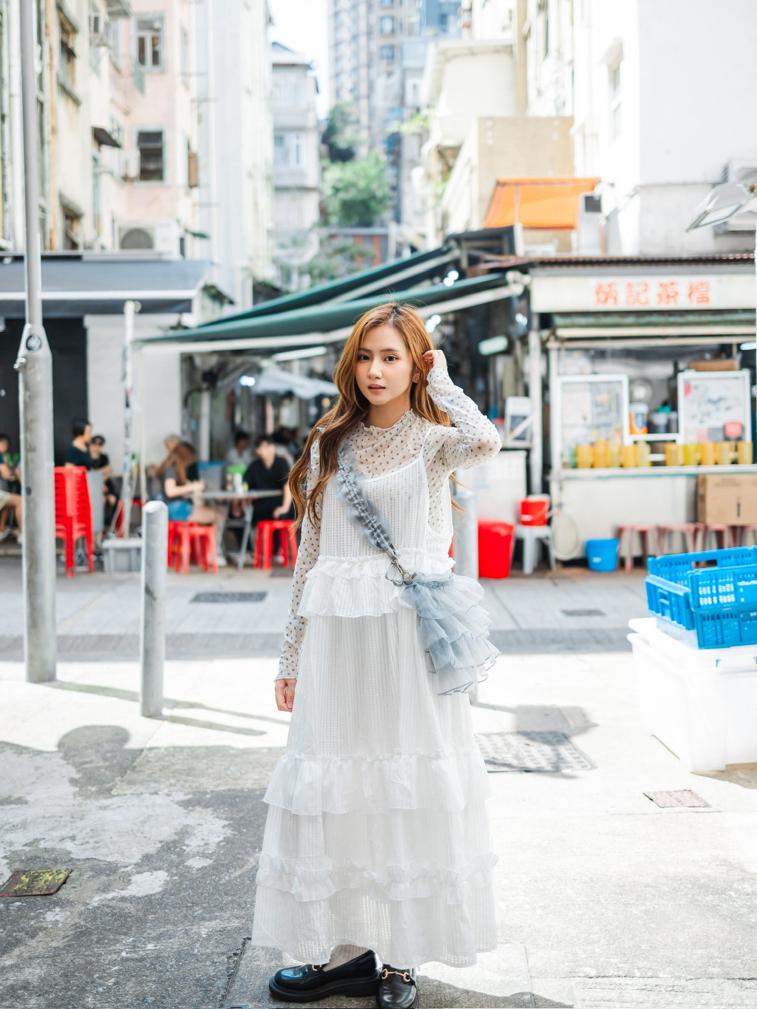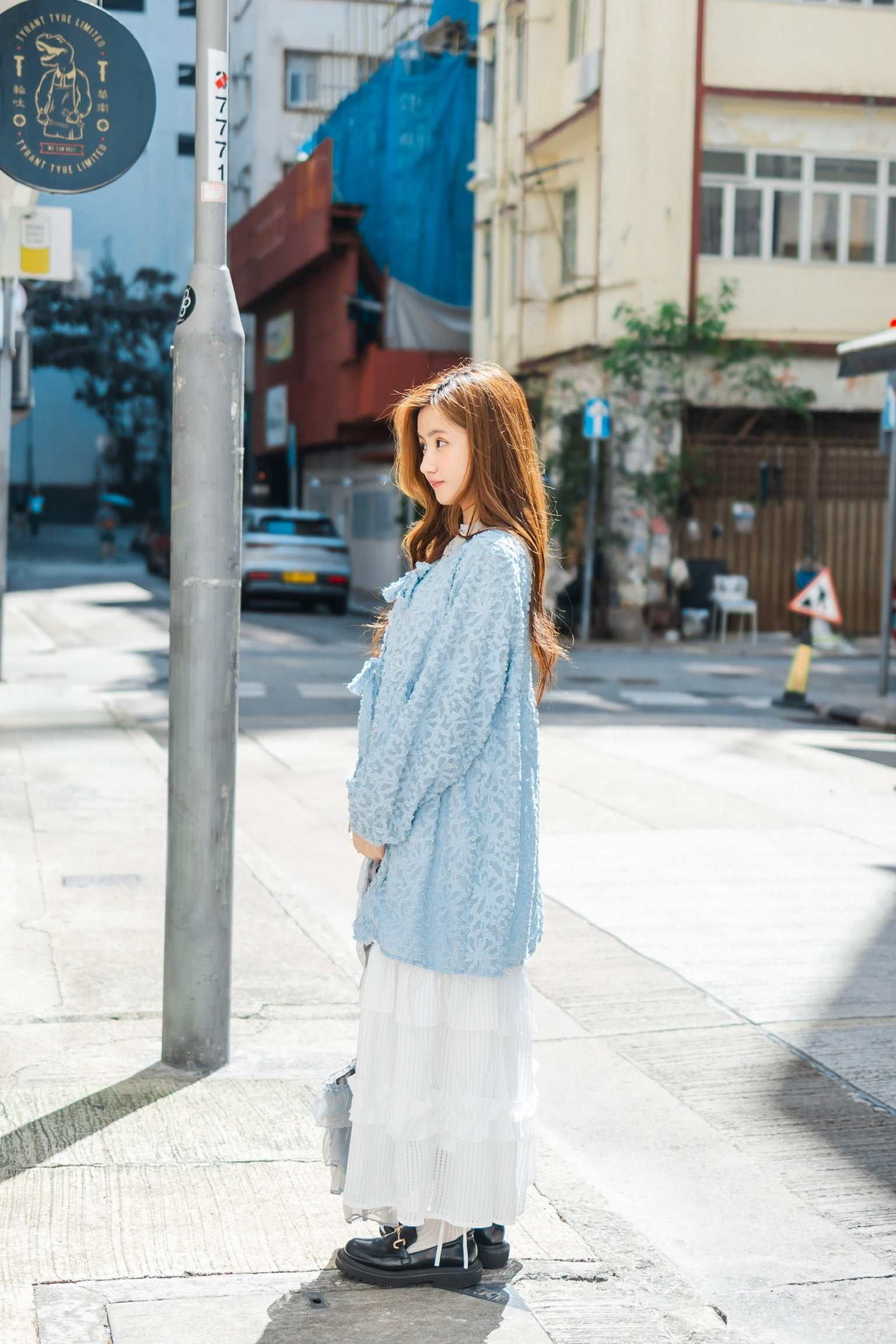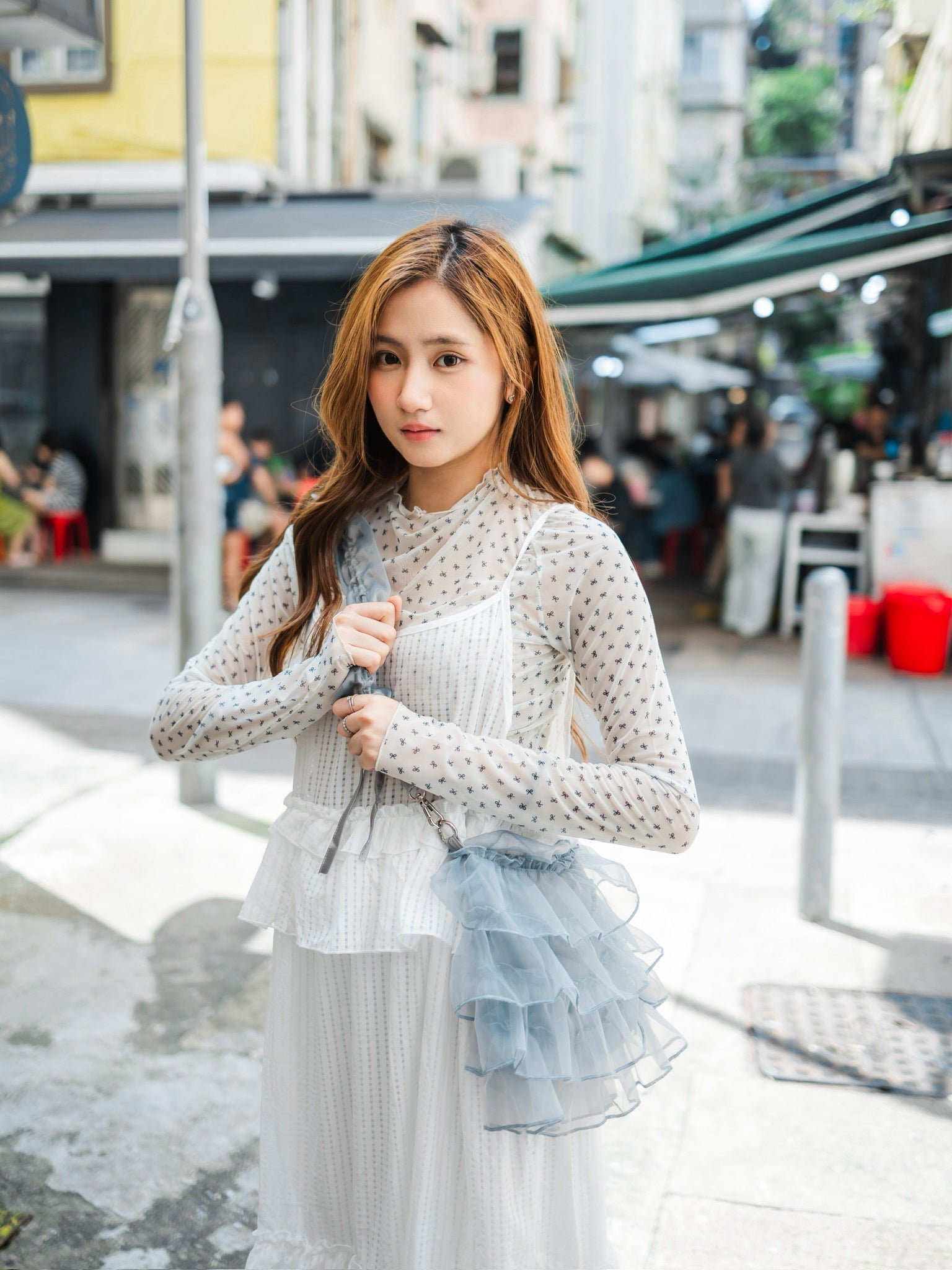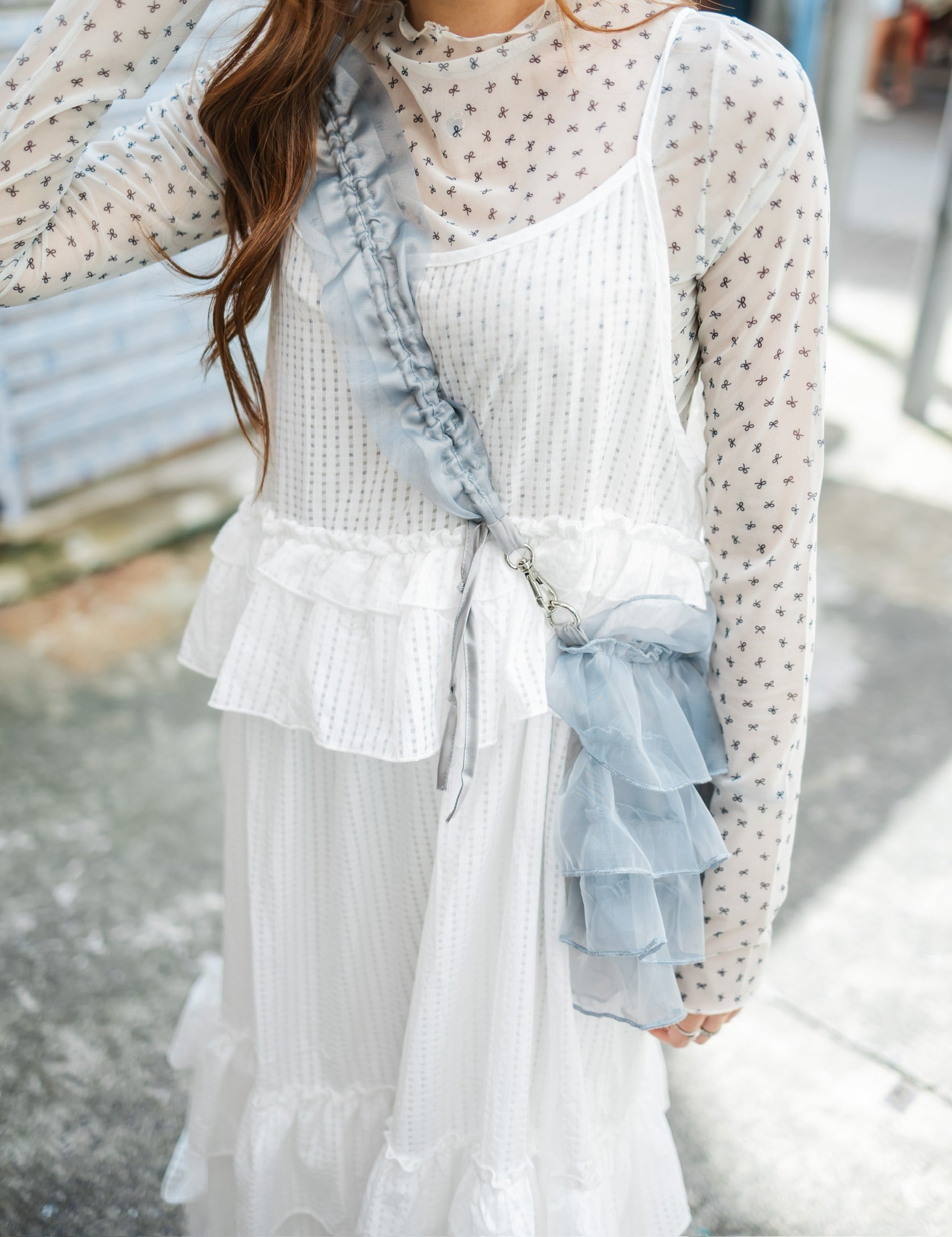 高領蝴蝶結網紗長袖上衣🎀