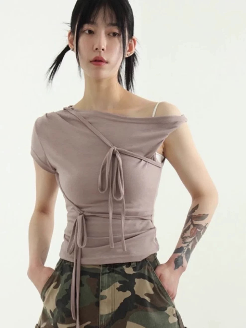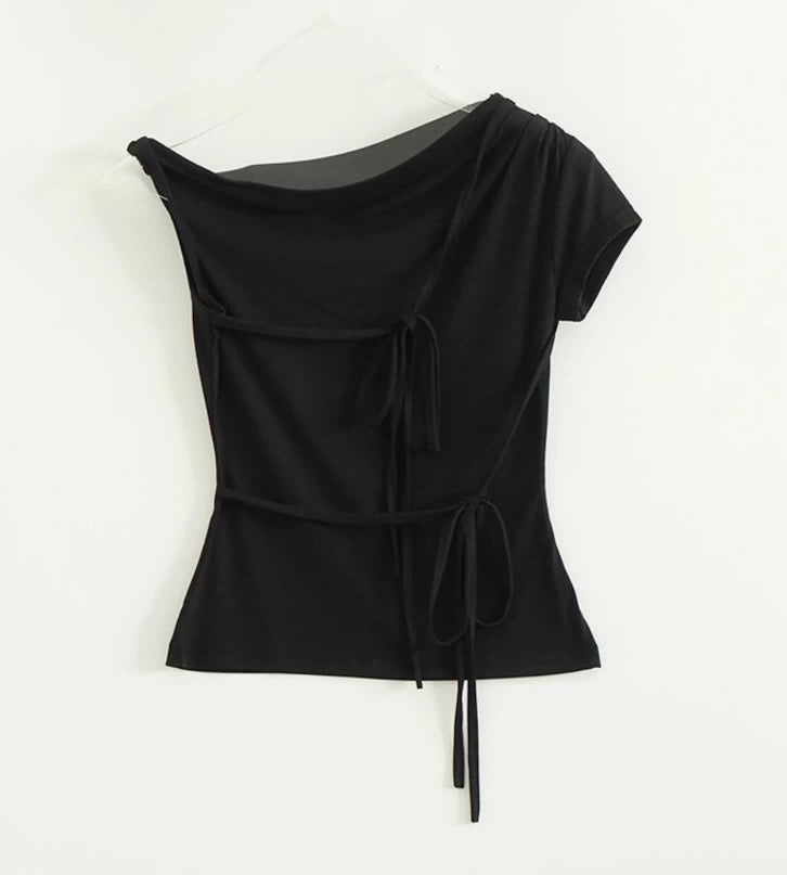 5色入!露肩綁帶不規則上衣🎀💕: